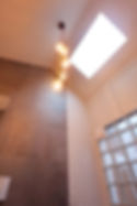 An existing small bathroom was being renovated with the removal of an eisitgn dropped ceiling, an old roof space hot water heater and an 'extension' of the bathroom space into the ceiling space (rather than 'out'), creating a larger volume while staying within the existing footprint. The space is compact, but high, while clear glass blocks are repurposed offering views into an existing light court along with a new large skylight.